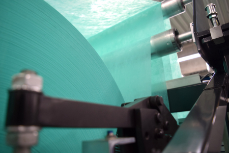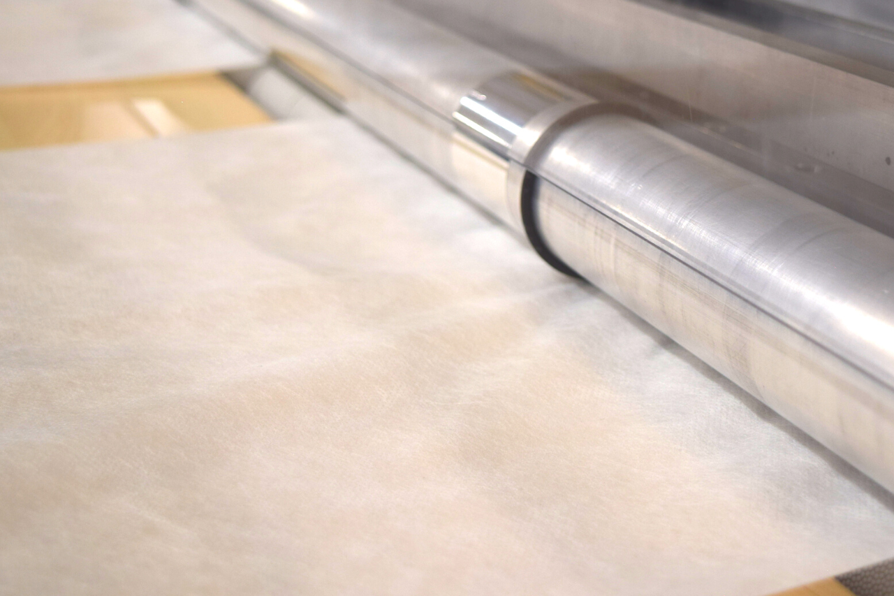 • K potisku netkané textilie využíváme potiskovacího zařízení pracujícího na principu flexotisku.
